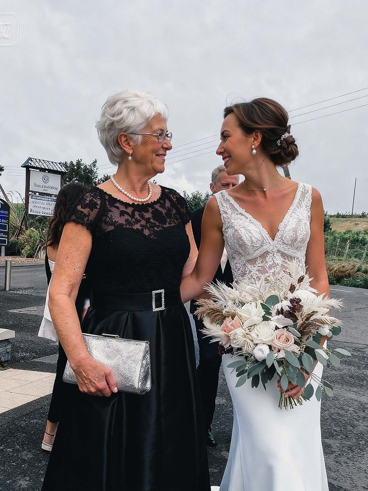 A-Line Asymmetrical Short Sleeves Floor-Length Satin Mother Of The Bride Dresses With Split Front Shoulder Ruffle Back Slit Tiered #SMBD12637