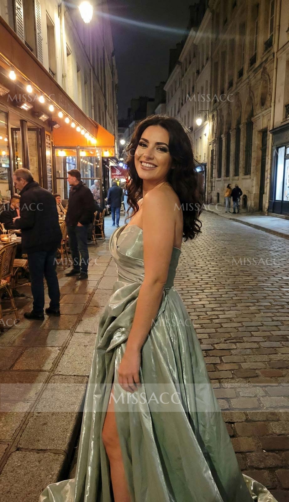 A-Line High Neck Long Sleeves Ankle-Length Lace Velvet Evening Dresses With Lace High Split