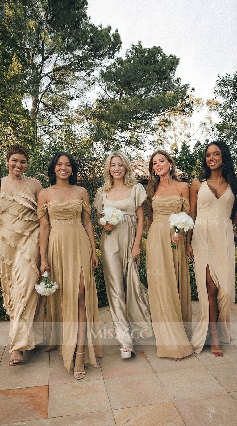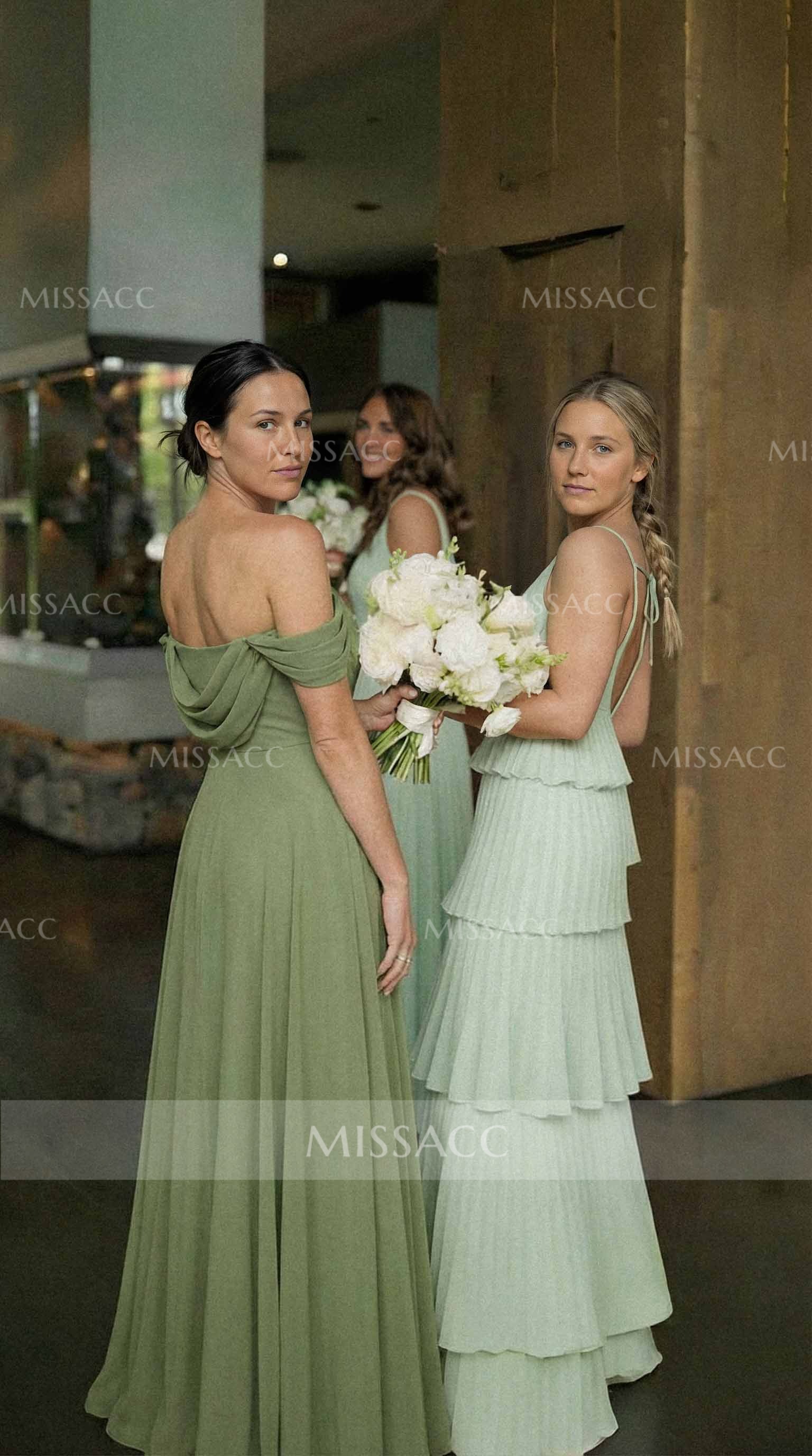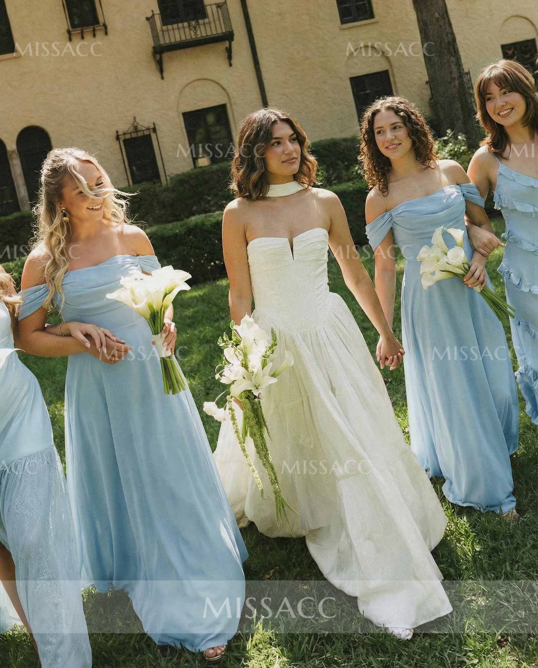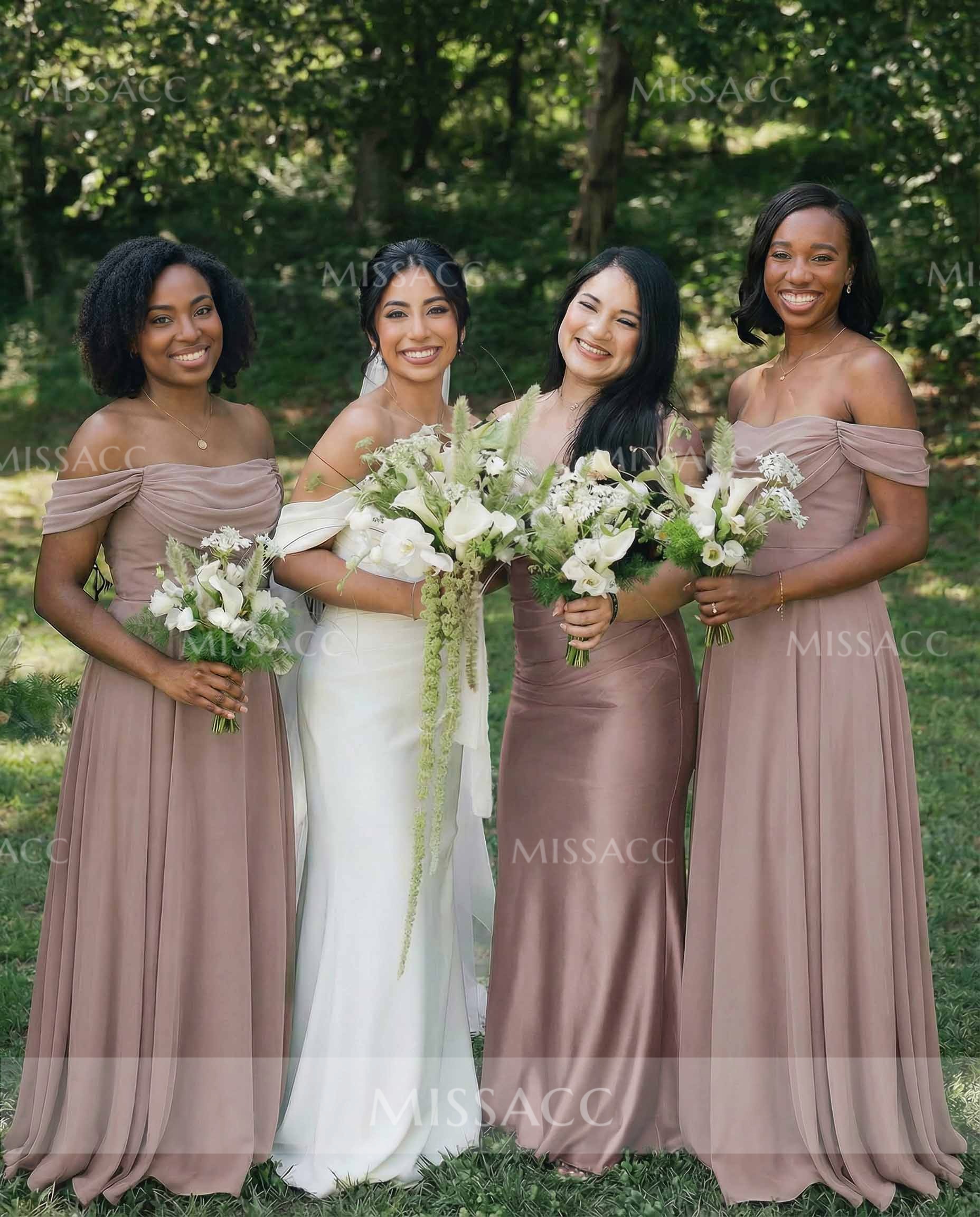 A-Line Off-The-Shoulder Sleeveless Floor-Length Chiffon Bridesmaid Dresses With Split Front