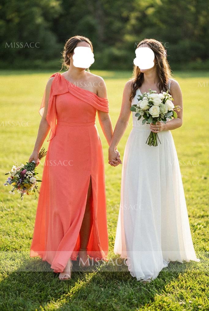 I was skeptical about buying a dress online, but this turned out okay. The chiffon is soft, not scratchy. The one-shoulder look is very flattering on my body type.