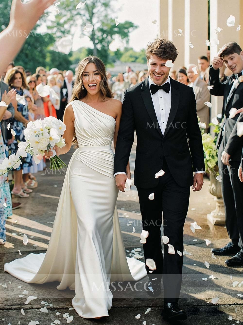 I’m so pleased with this dress! It’s exactly what I was hoping for. The one-shoulder is super stylish, and the satin is so luxurious. I wore it for a family celebration and felt incredibly put-together. It was comfortable to wear for the whole evening, and I loved how it flowed when I walked. The detachable train made it easy to transition from ceremony to reception. A definite win!