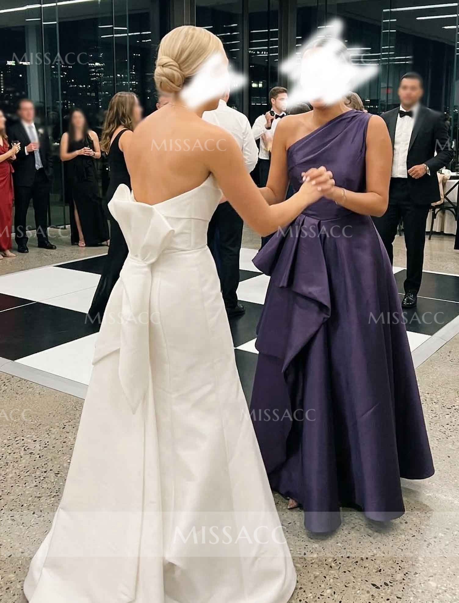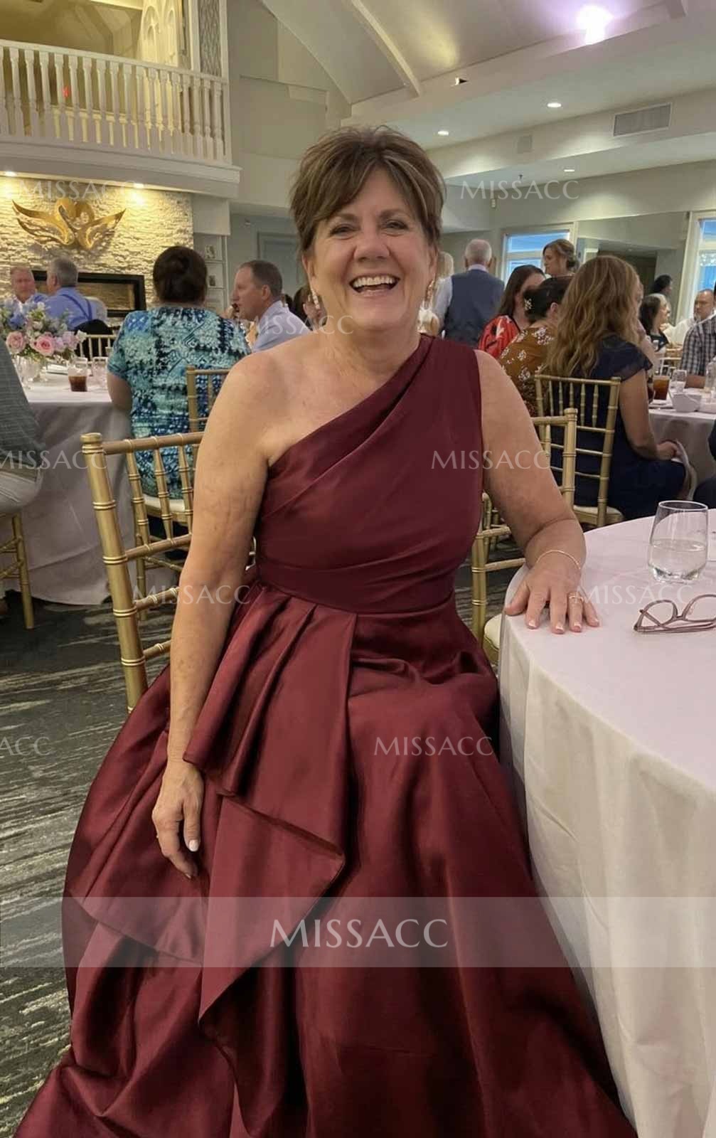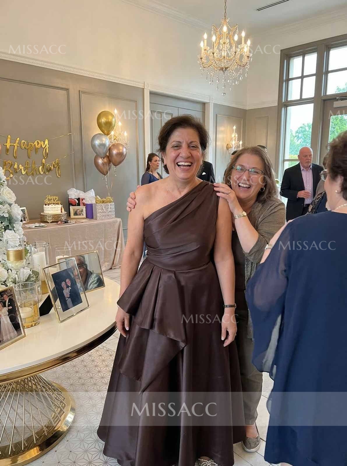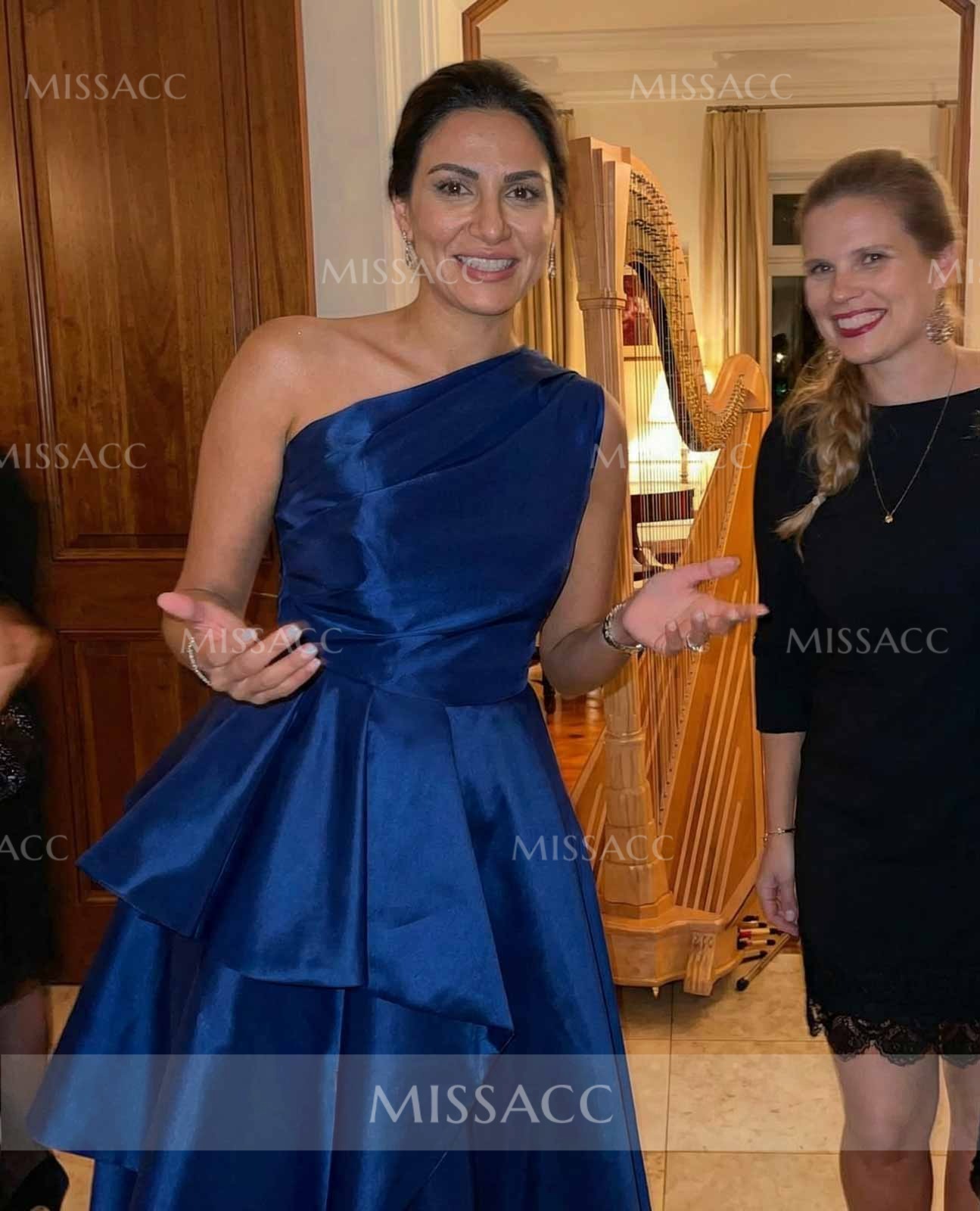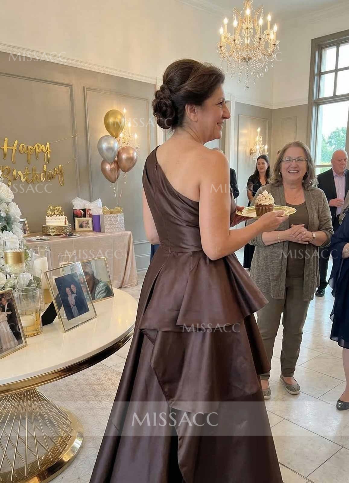 Featuring ruffle detailing, you'll find sophisticated glamour. Crafted from luxurious satin, this dress has a smooth and elegant silhouette that flatters every curve. The one-shoulder design adds a touch of modern elegance, while the ruffle trim creates a playful and sophisticated look. Perfect for evening events, this dress is sure to be the center of attention. With minimal accessories, you can make this dress shine at its best. Ideal for special occasions, this dress is a must-have for your closet. Shop now for a chic and stylish evening look.
