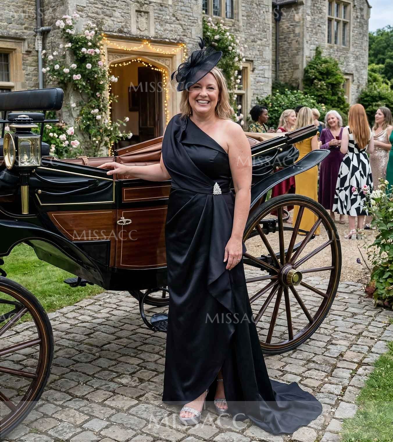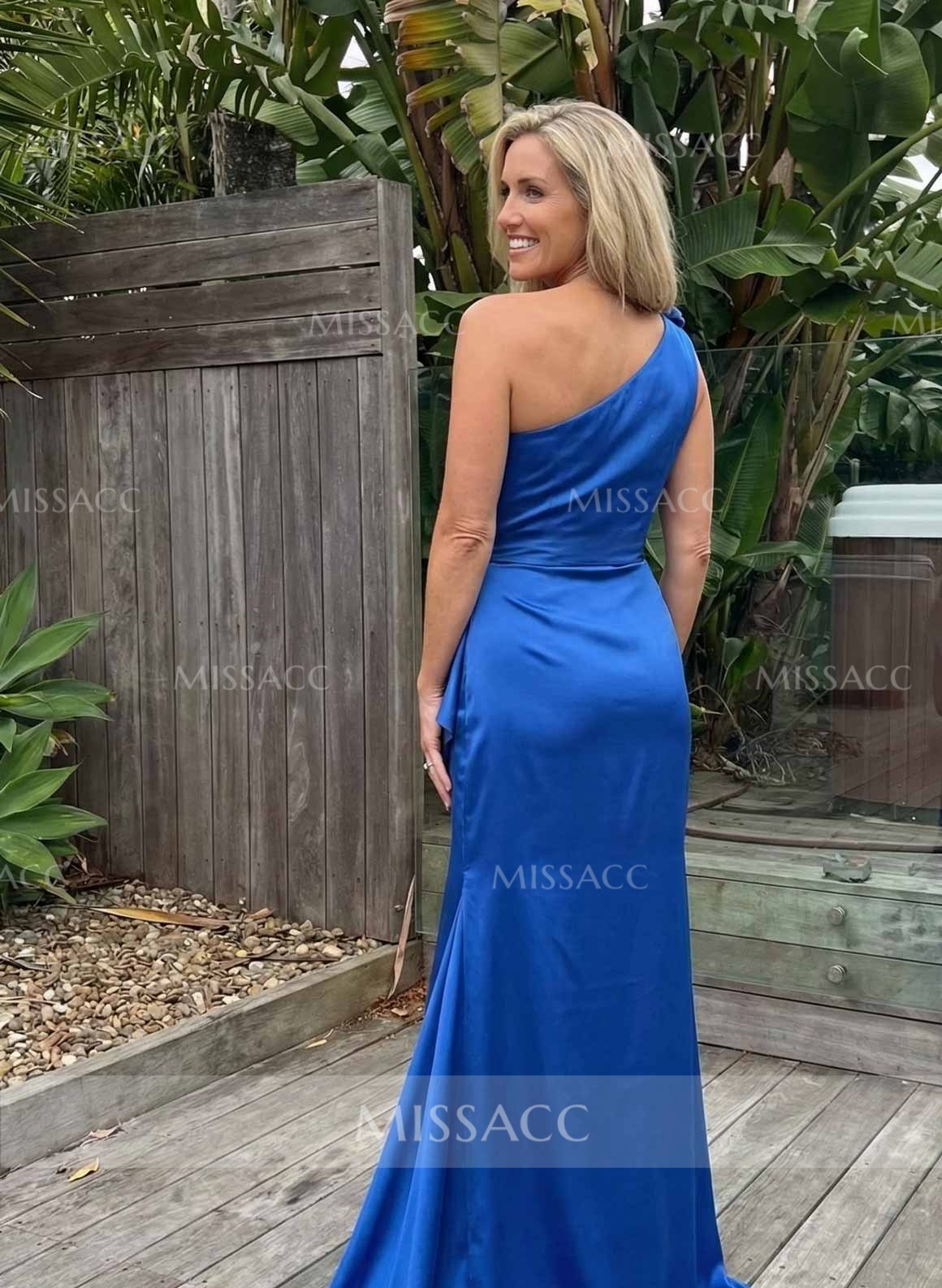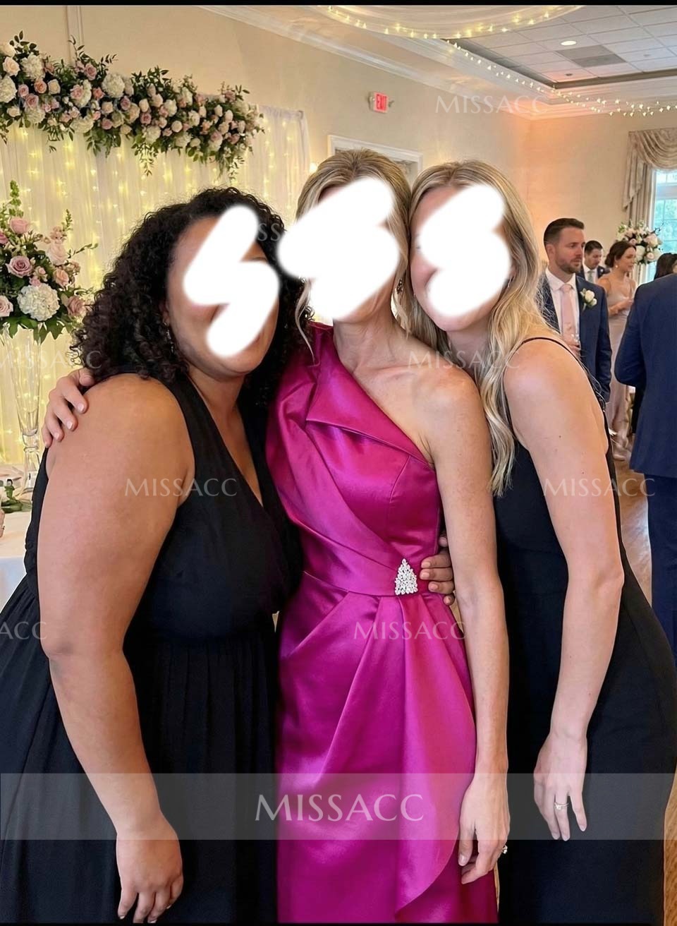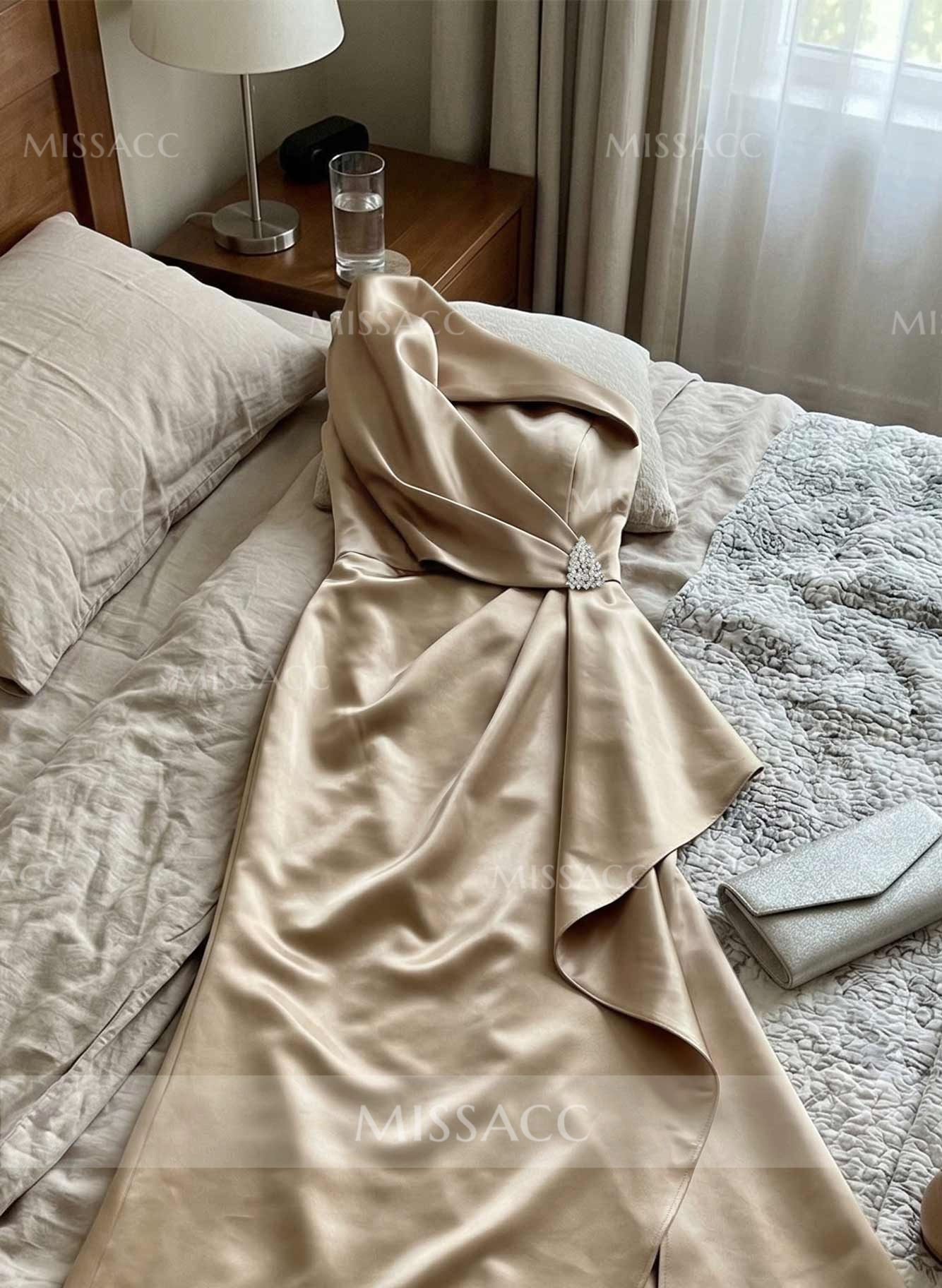 Actually blown away by the quality of this satin fabric! The one-shoulder design is incredibly flattering and holds everything in place perfectly. I did have to get the hem taken up a bit to fit me. It looks way more expensive than it actually is.