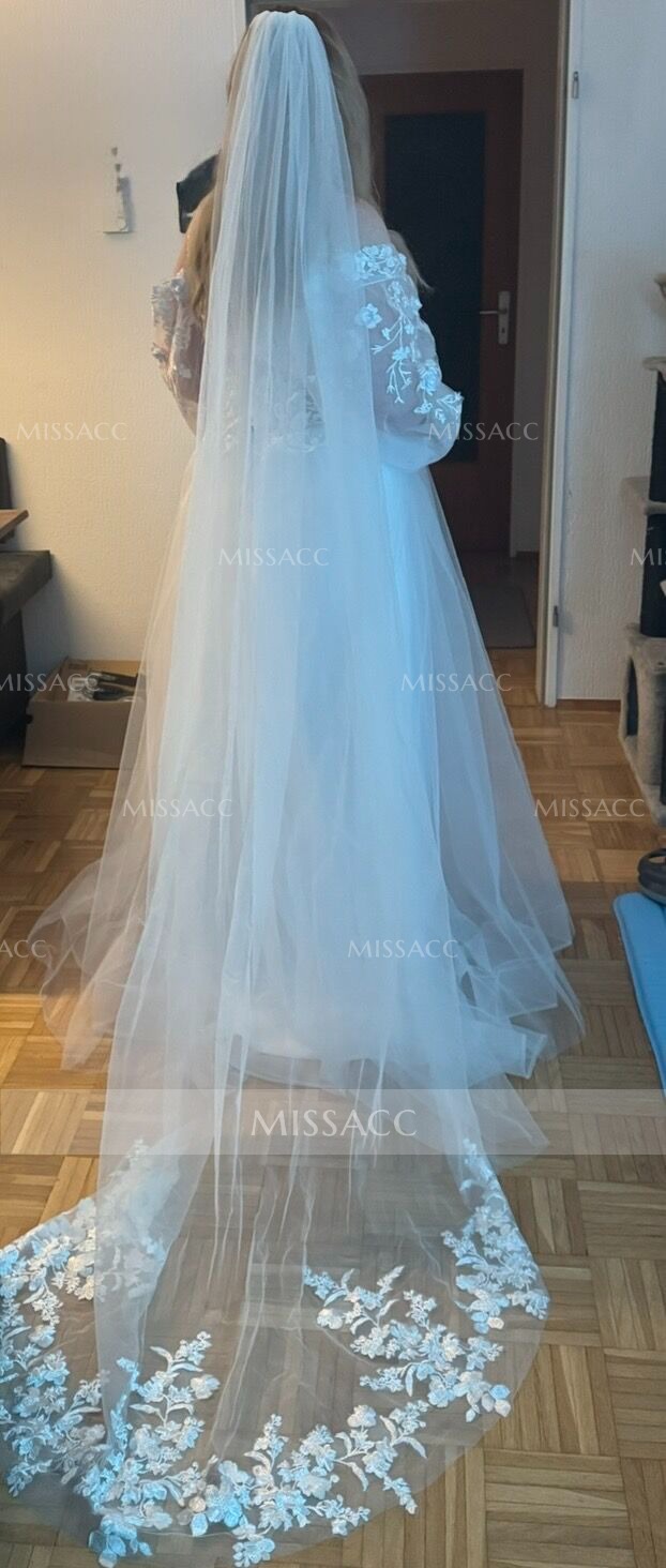 Styled in the classic wedding dress, look stunning. This strapless dress will captivate everyone in her path with her embroidery embellishment. The sweetheart neckline, mid-open back, and exposed boning are all highlighted in an alluring illusion corset top.The skirt finished with a sweep train flares into an A-line silhouette that reaches the floor. Savor this wedding dress design's alluring charms.