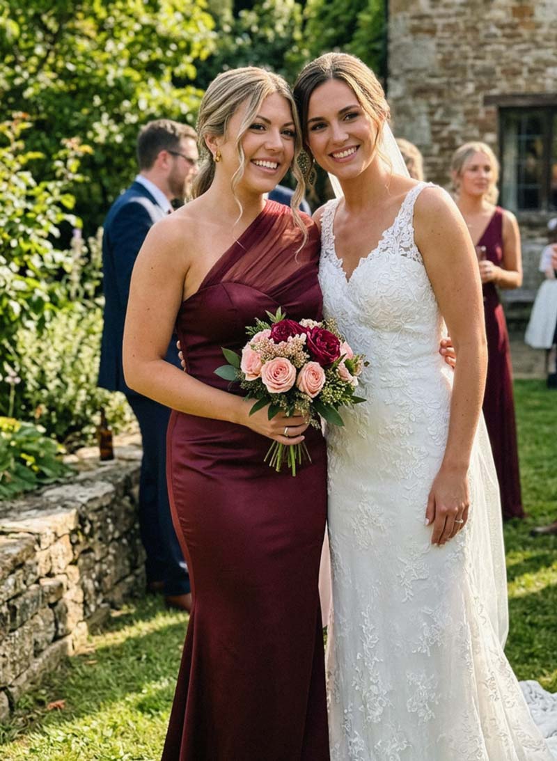 Just got this dress for my cousin's wedding and it's absolutely gorgeous! The fabric feels so soft, and it fits perfectly – not too snug, not too baggy. The color is a tad deeper than what I saw in the picture, but it's still stunning. Can't wait to rock it at the event!