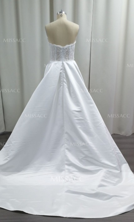 Got this dress for a simple courthouse ceremony and it was perfect. I loved the strapless look, it felt secure enough that I wasn't pulling it up all day. The train is a bit longer than I expected, which looked dramatic in photos, but I did have to be careful walking around outside.