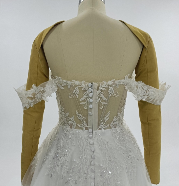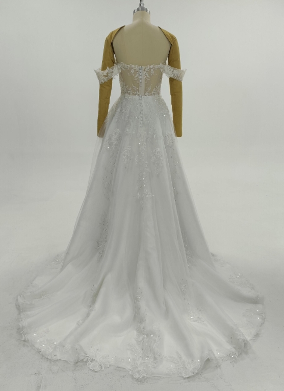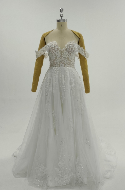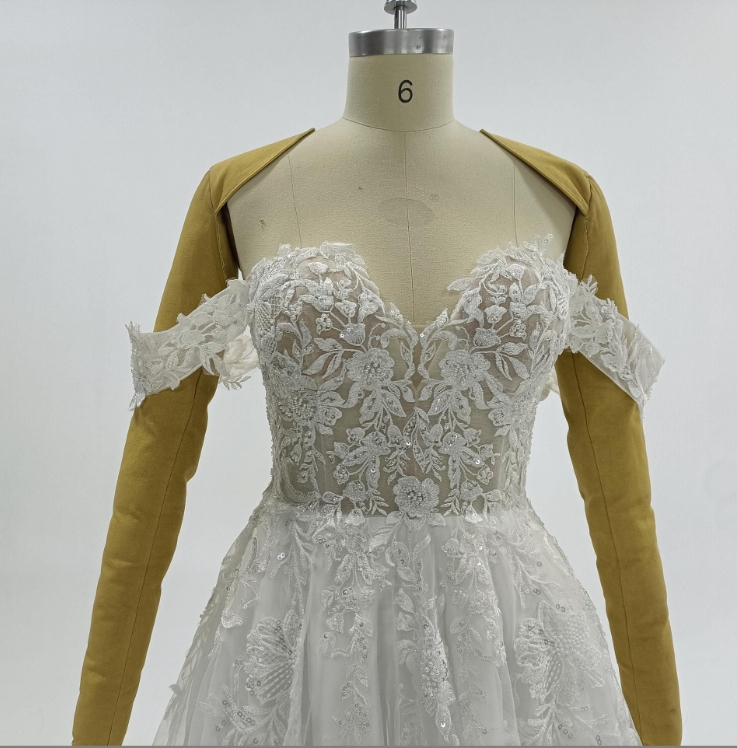 Stunning A-line sweetheart wedding dress with a sleek silhouette and elegant sweep train. Perfect for a romantic ceremony.