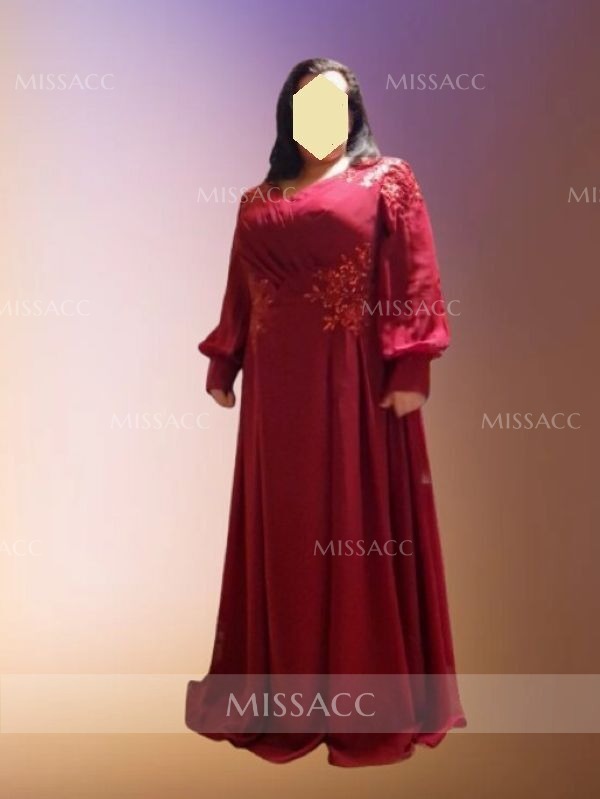 Discover our A-line V-neck chiffon Mother of the Bride dress with lace, perfect for a sophisticated wedding occasion. This dress features long sleeves and a flattering silhouette, crafted for comfort and style.