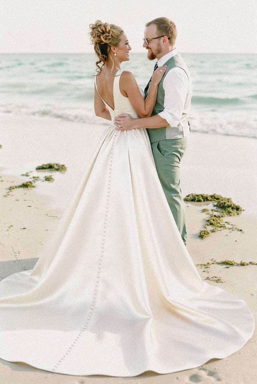 I bought this dress as a backup because my original custom dress was delayed, but I ended up loving this one more! It has such a clean, modern silhouette. I wore it for our elopement on the coast, and the wind caught the skirt beautifully. The satin is heavy, which is great for structure, but it can get a little warm if you're in direct sunlight for too long. The fit was surprisingly accurate to the chart; I ordered a standard size and didn't need any alterations except for a bustle. It’s simple, chic, and photographs incredibly well. Highly recommend for a modern bride.