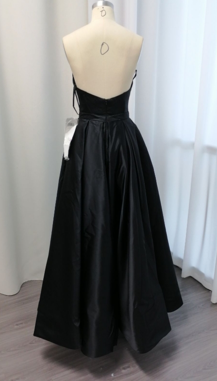 Luxurious satin ball gown with a striking split-front design. Strapless and sleeveless for a timeless, elegant look perfect for weddings.