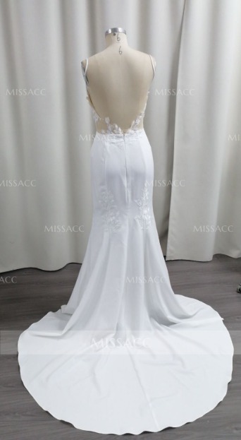 Beach/Boho Cowl Neck Sleeveless Court Train Lace Wedding Dresses #SWD11641