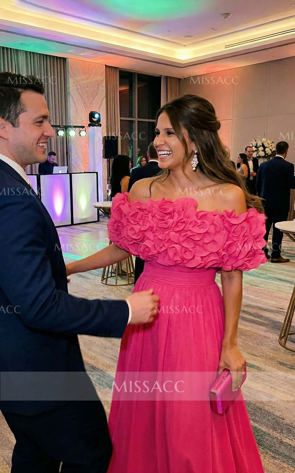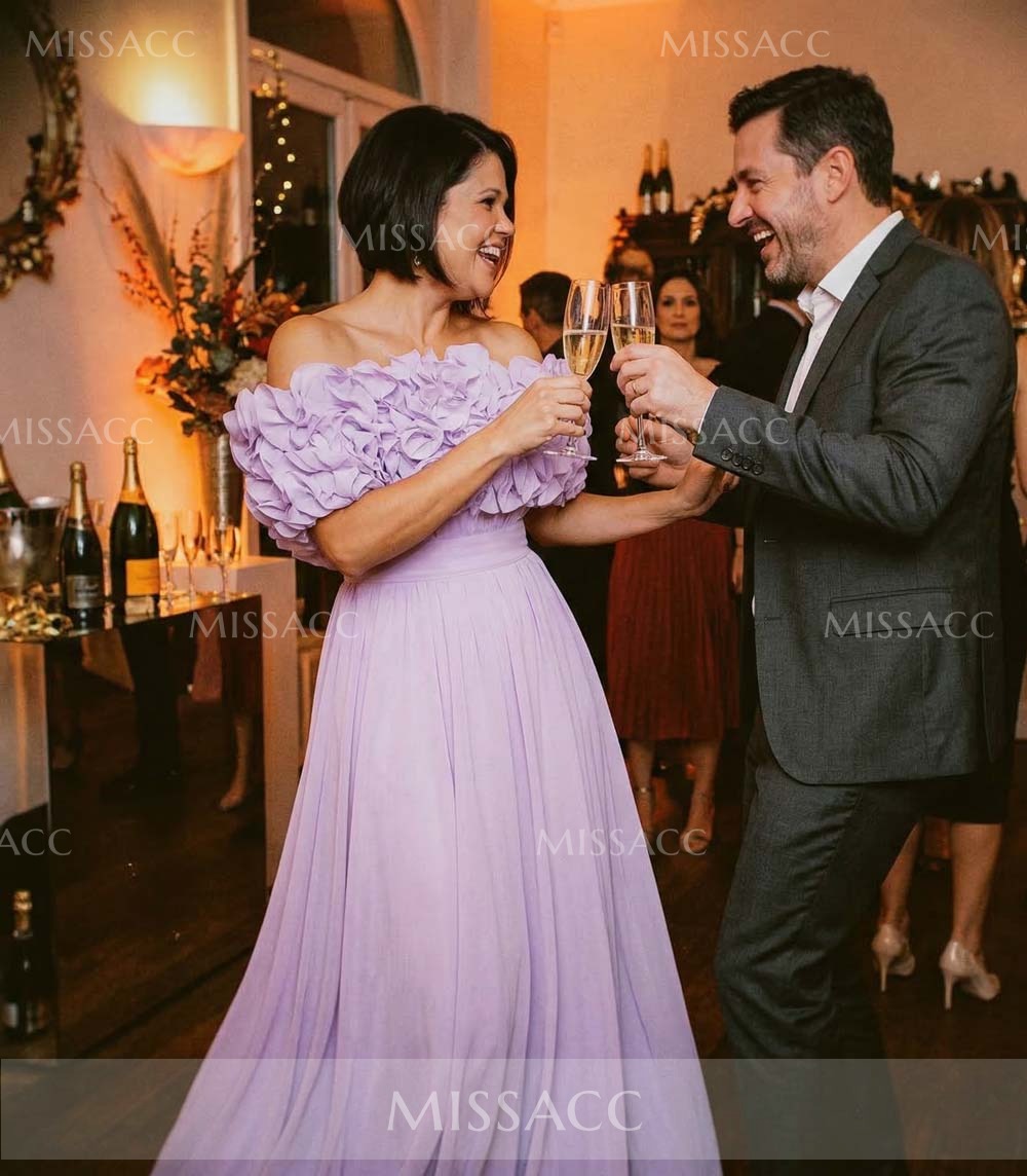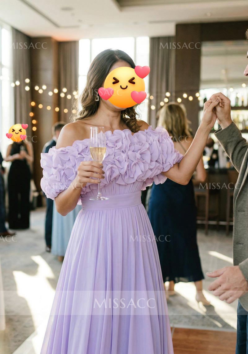 Wore this dress to a party and received a lot of compliments! The quality of the chiffon is excellent - light yet very elegant. The floral ruffle adds a unique and romantic touch without being too over the top. It's very easy to move around and communicate while wearing it. This is the best purchase I've made in a while!