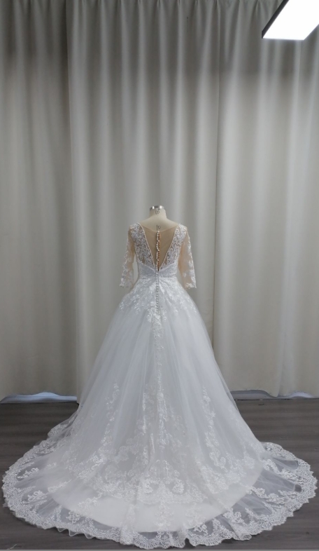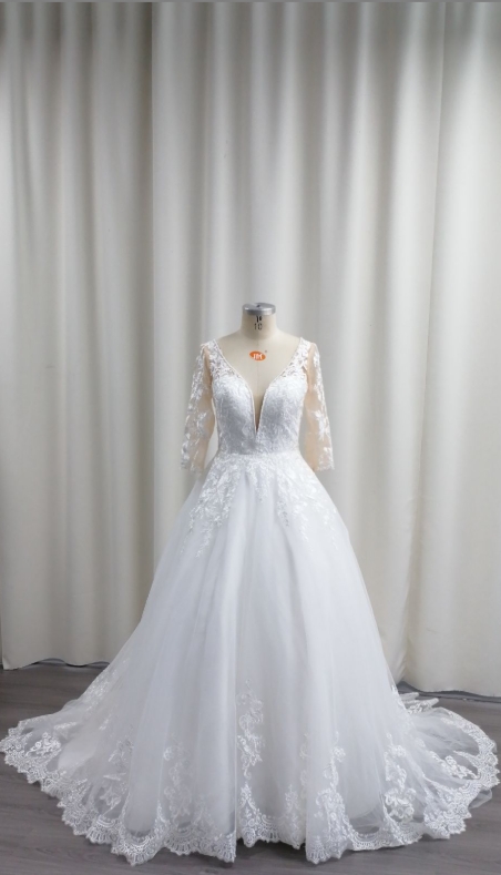 The dress arrived super fast, and honestly, it's even more stunning in person! The 3/4 sleeves are absolutely perfect for a spring wedding, and the mix of lace and tulle is just breathtaking.