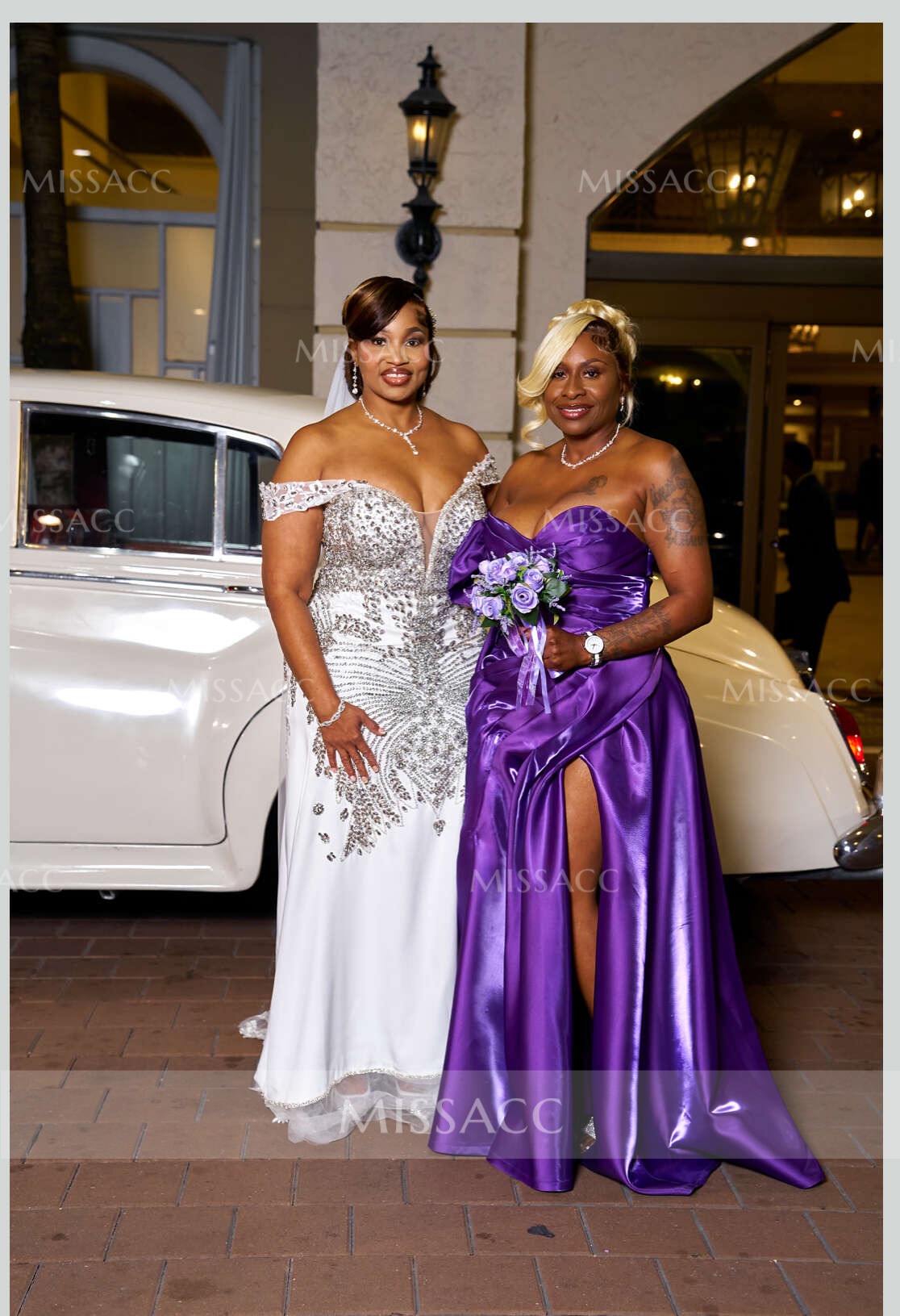 A-line evening gown, crafted from luxurious satin, features a graceful cowl neckline, delicate pleating, and a dramatic high split with a sweep train. This exquisite formal dress is perfect for galas, weddings, and special occasions. Shop this sophisticated party dress and make a statement.