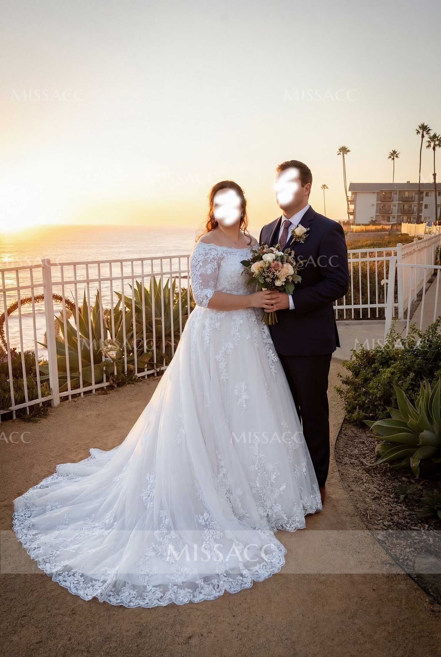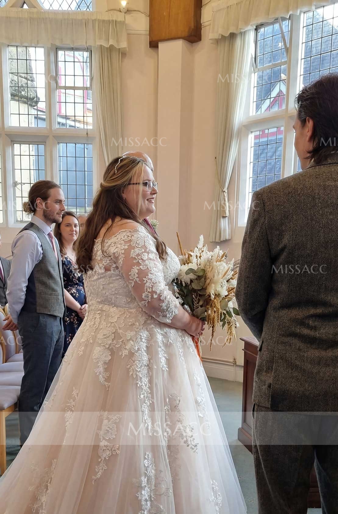 I was honestly so nervous about ordering my wedding dress online, but this one turned out surprisingly well! The lace detail on the sleeves is super pretty and doesn't feel scratchy at all. It fit almost perfectly right out of the bag, just needed a tiny hem.