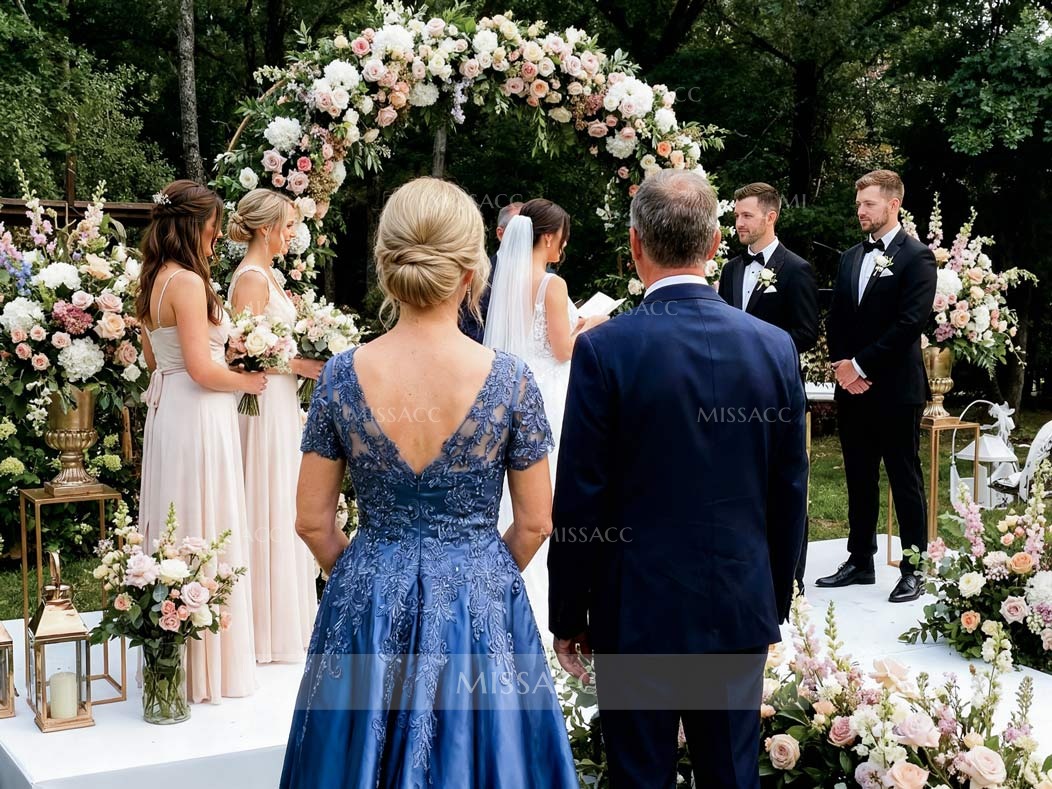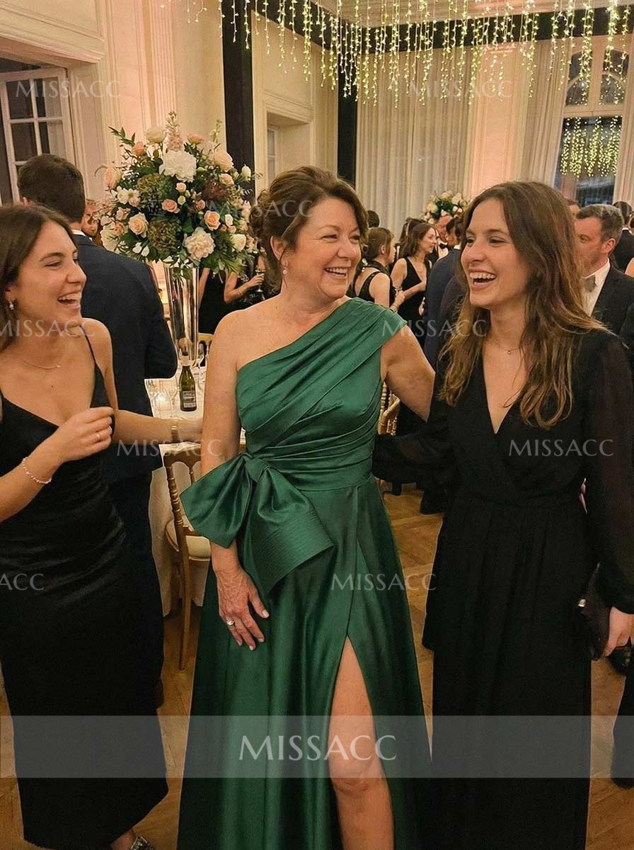 Elegant Off-The-Shoulder Illusion Corset Ruffle Split Front Sweep Train Crepe Satin Mother Of The Bride Dresses #SMBD12607