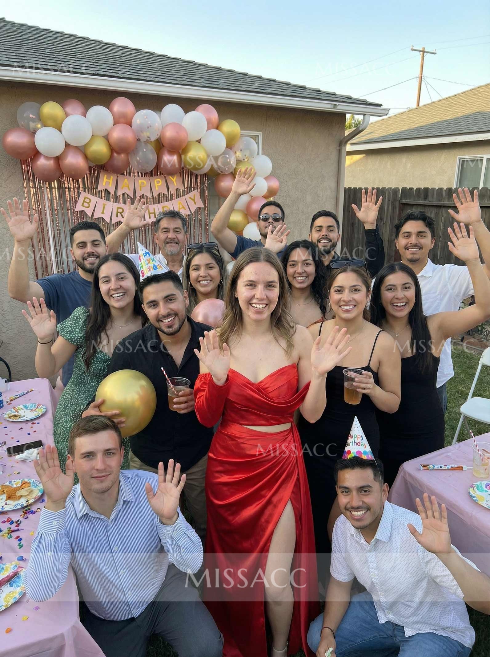 Bought this for my daughter's junior prom. She loved the split front because it made it easier to walk in heels. The material is decent, maybe a little thin, but with the right undergarments, it looked perfect. She felt like a princess, so I'm a happy mom.