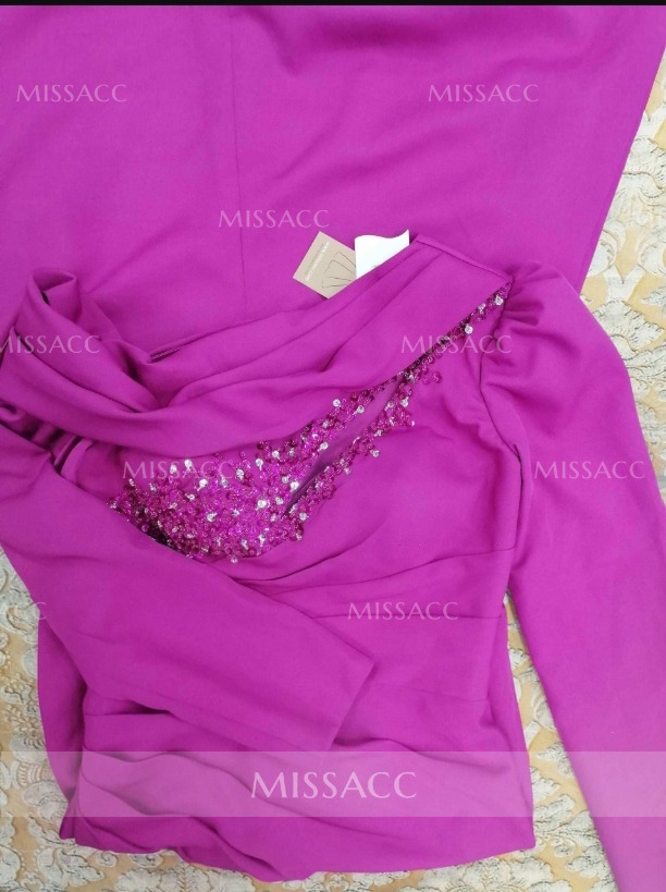 Glamorous Mother of the Bride Dress in Sheath Column Style, featuring an Asymmetrical Neck and Beading Detail for a Special Occasion.