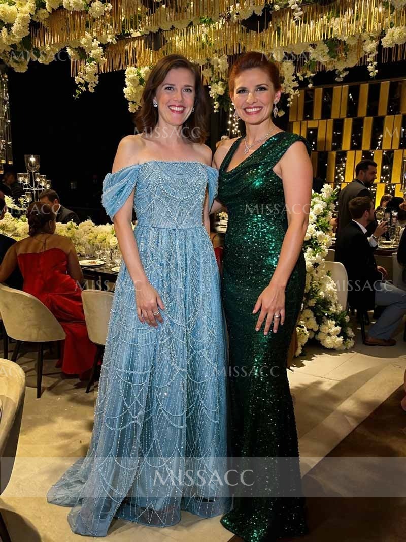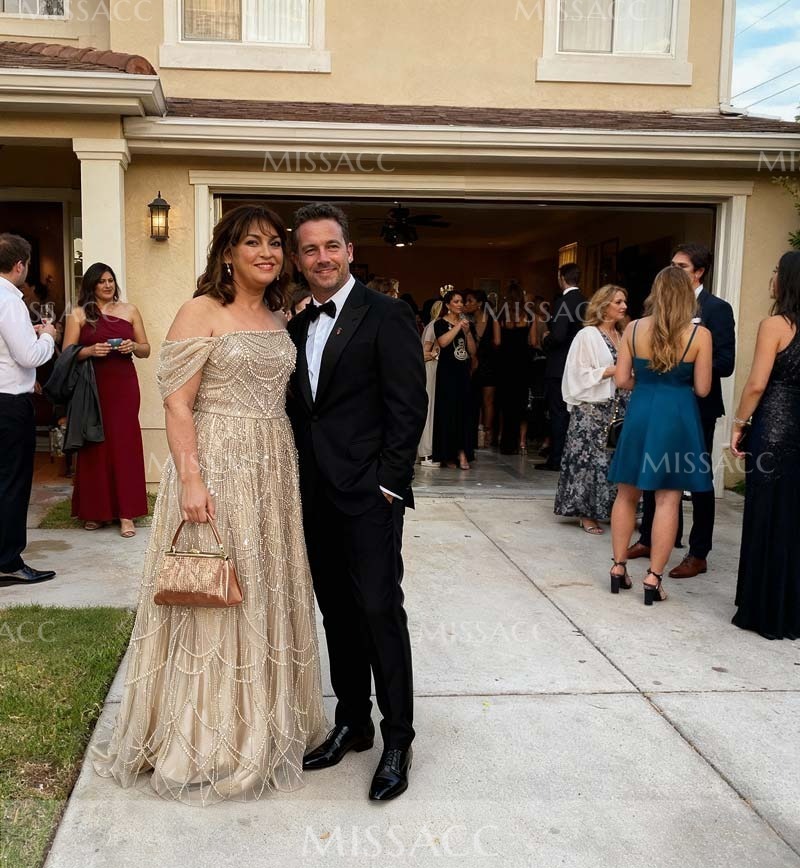 This gown was the perfect choice for a special celebration! The intricate beadwork on this off-the-shoulder dress is absolutely divine, creating a stunning texture and sparkle that truly catches the eye. The champagne color is wonderfully sophisticated and elegant, making it feel very high-end. I loved how comfortable it was despite its elaborate appearance; I could easily enjoy the party, chat with friends, and move around freely. The silhouette is flattering, giving a beautiful drape without feeling restrictive. It truly made me feel glamorous and confident all night long. This dress is a definite must-have for any formal party or event where you want to look and feel extraordinary!