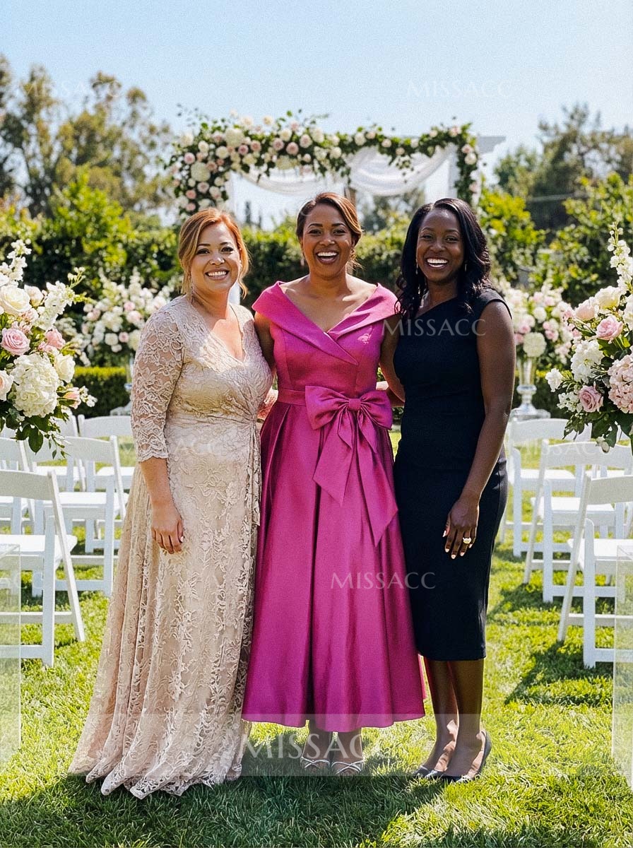 I'm absolutely loving my new dress! The satin feels so luxurious and the color is exactly like the picture. The cap sleeves and V-neck are super flattering, and that little bow detail is just adorable. It's a bit more laid-back than I expected, but honestly, it's going to be perfect for a daytime wedding or a garden party!