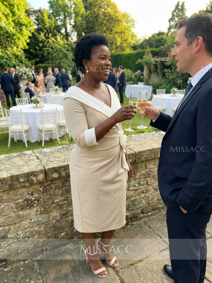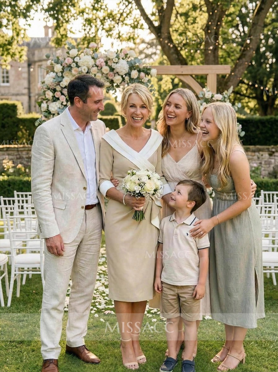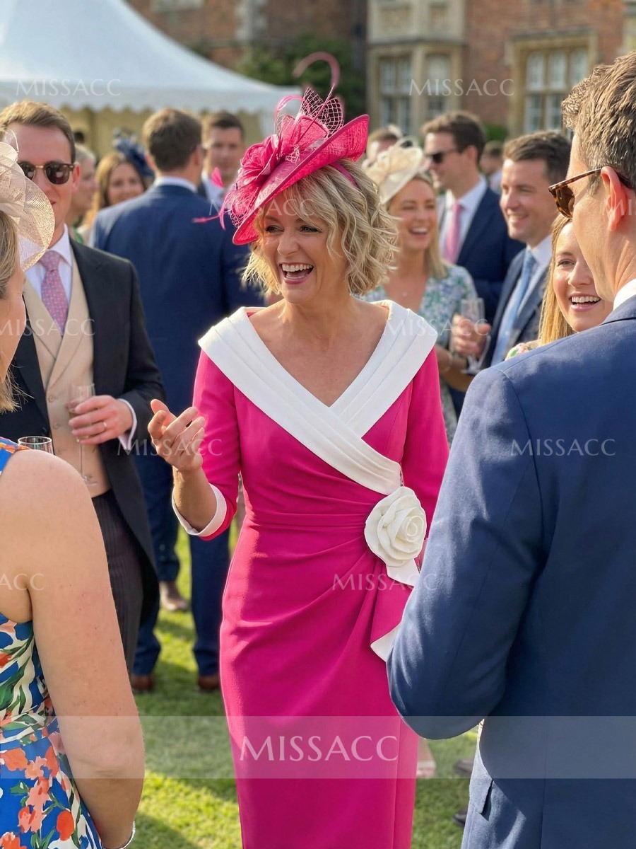 Discover our Sheath Column Elastic Satin Mother of the Bride Dress, featuring a slight stretch for comfort and a delicate flower design. Perfect for a chic wedding celebration.