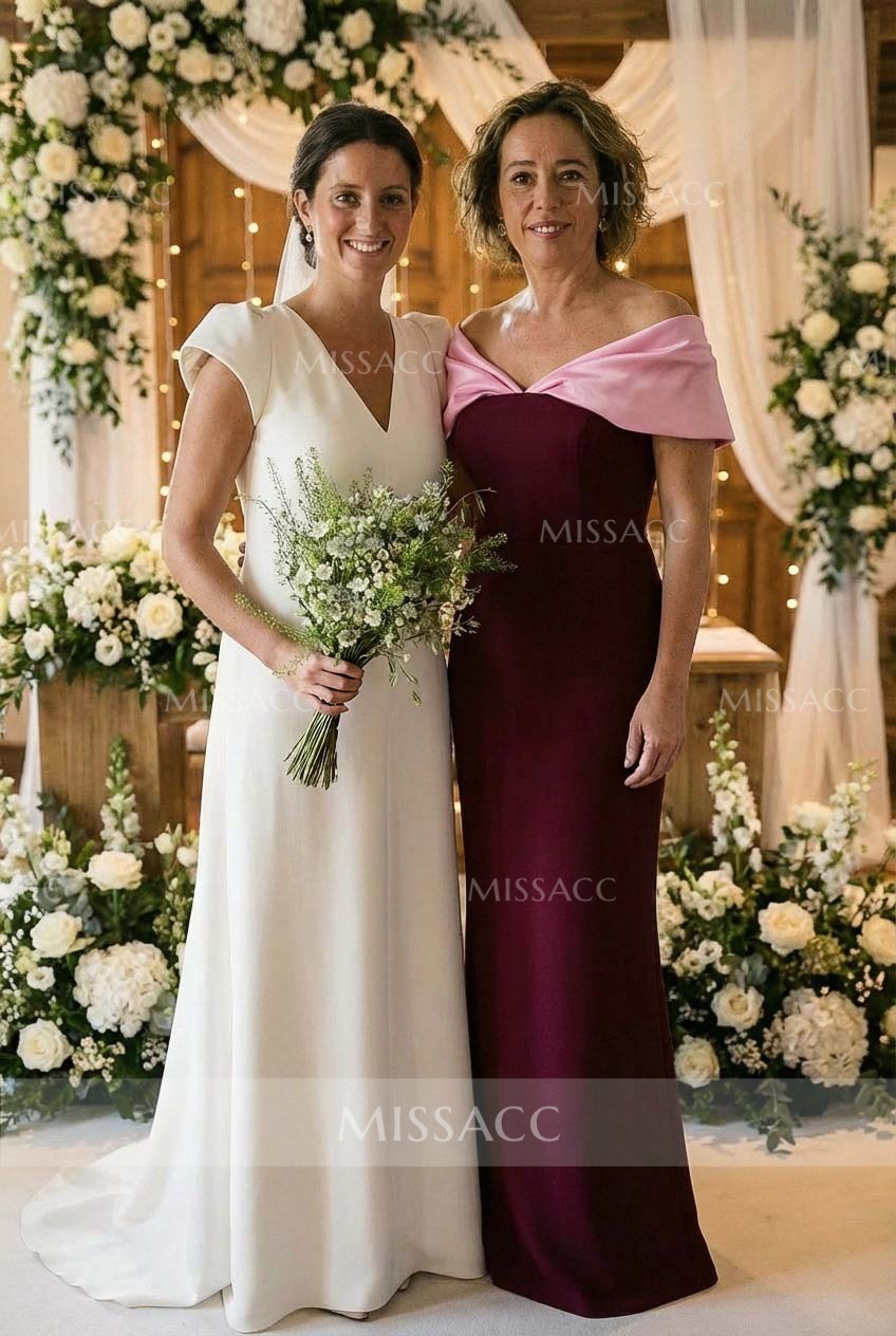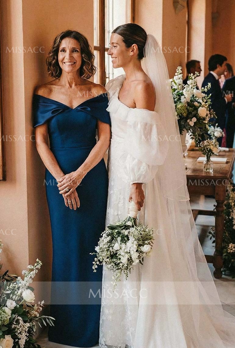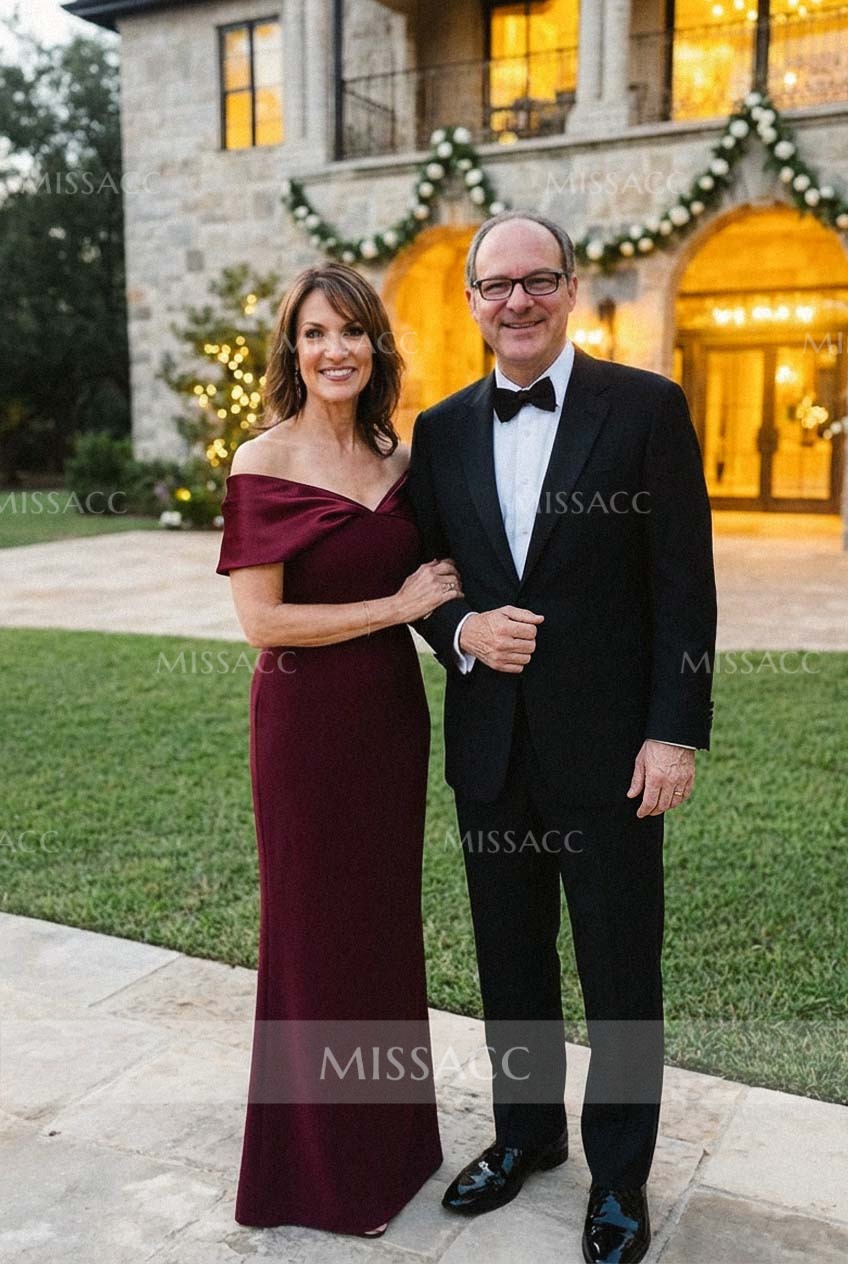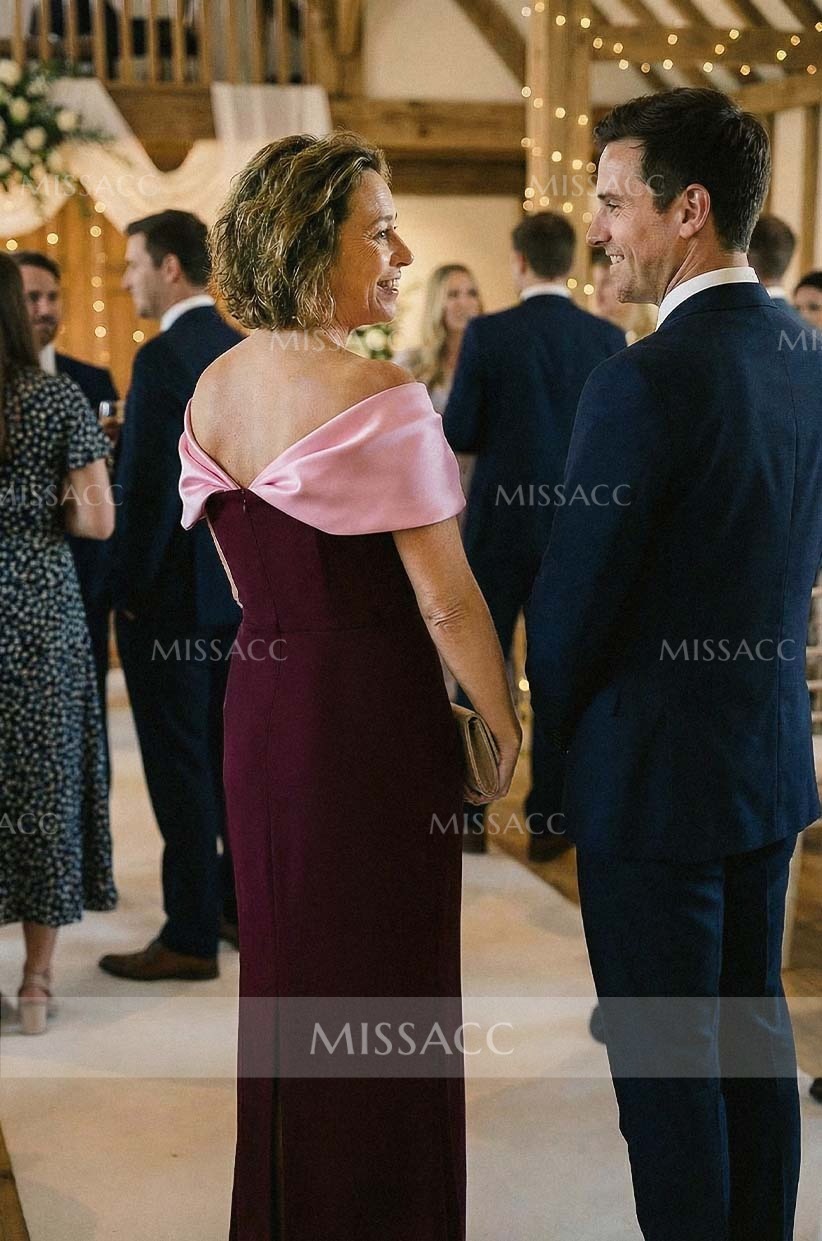 Discover this exquisite Sheath/Column Mother of the Bride Dress, crafted from premium Elastic Satin. Featuring a chic off-the-shoulder neckline and a floor-length cut with a back slit, it offers a sophisticated look. Perfect for formal weddings and evening galas.