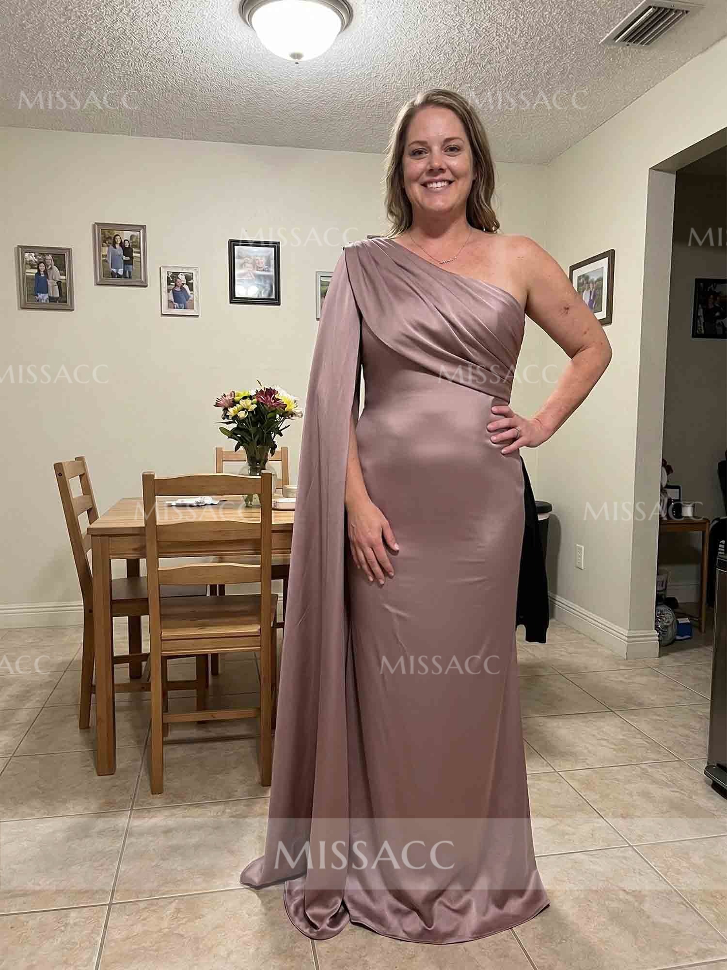 I got this for my daughter's wedding. The one shoulder look is super cute and the drape adds a nice touch. Overall it's a solid dress for the price and I got a few compliments on it.