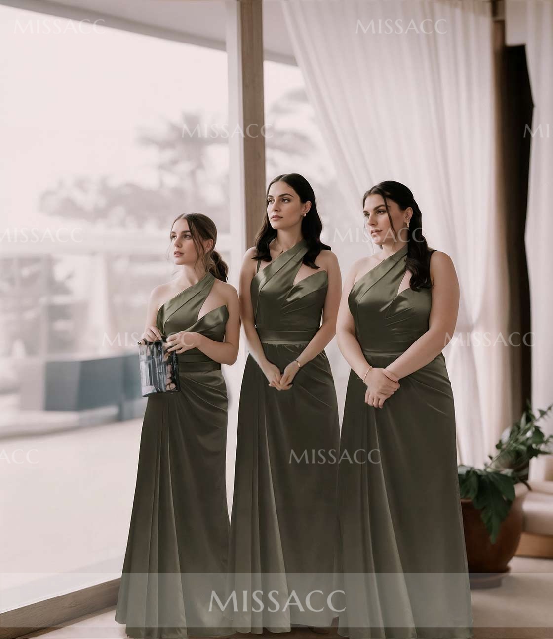 You are more than gorgeous when you wear this unbeatable bridesmaid dress. This silk like satin gown is perfect for a night out on the red carpet because of the pleated features that provide a touch of texture and complexity to the design. An asymmetrical neckline and the one shoulder design draw attention to the bust.A sweeping side drape giving the whole thing a dash of seductive sophistication. Unleash an inner glamor that attracts all eye on you in this bridesmaid dress.