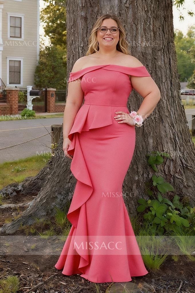 Ascend the ranks of impeccable style in the refined dress. Expertly crafted with tailored lines on an exquisite elastic satin silhouette, this dress showcases an off the shoulder neckline, offering a sophisticated touch. Intriguing draping along the waist enhances the overall allure. The back exhibits a concealed zipper closure, ensuring a seamlessly polished appearance. The sheath skirt is elevated by an asymmetrical ruffle accent. This mother dress is a tasteful and captivating option for any special event, signaling a climb into the realms of timeless elegance.