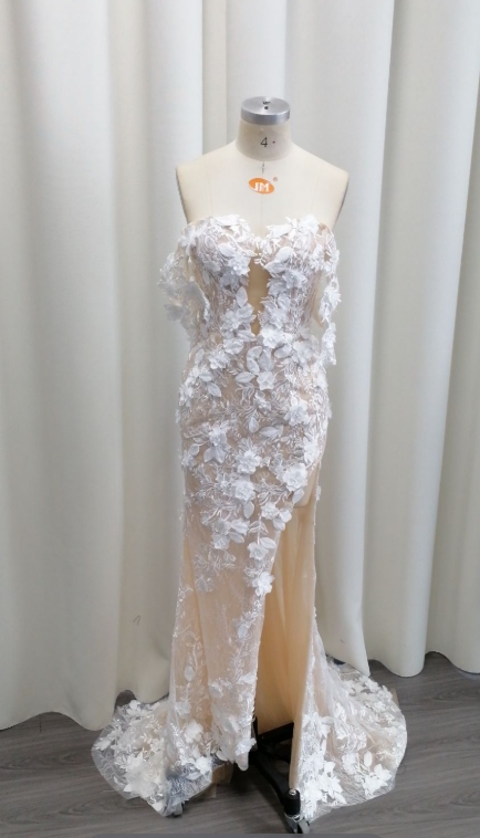 3D flowers, dramatic high leg slit, my Dream wedding Dress