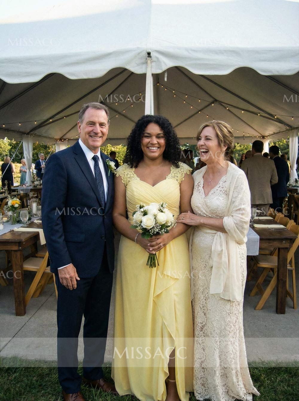 The dress arrived super fast and it's even more gorgeous in person! The lace is so delicate and the chiffon drapes beautifully. I can't wait to see my bridesmaids in these!