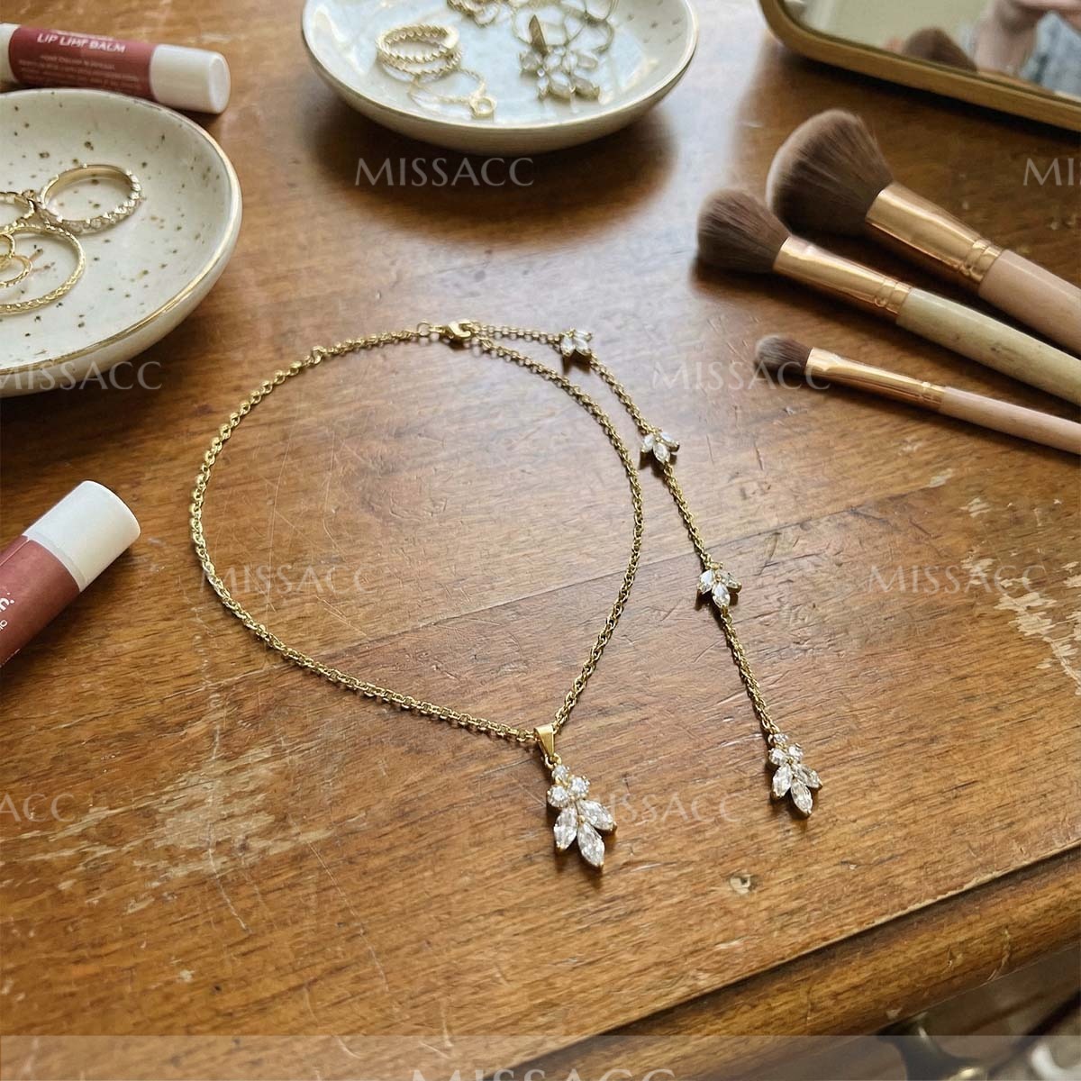 I needed something simple to wear for a wedding that wouldn't distract from my dress, and this leaf necklace was perfect. It sits right at the collarbone, which is exactly the length I was looking for. The zirconia stones catch the light really well during the evening. It feels a bit lighter than I expected, maybe slightly delicate, so I'm just careful not to snag it on my dress.