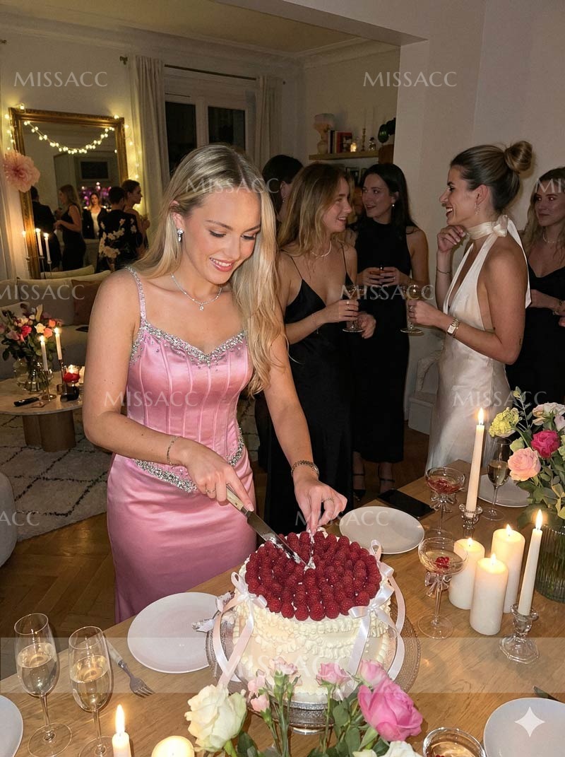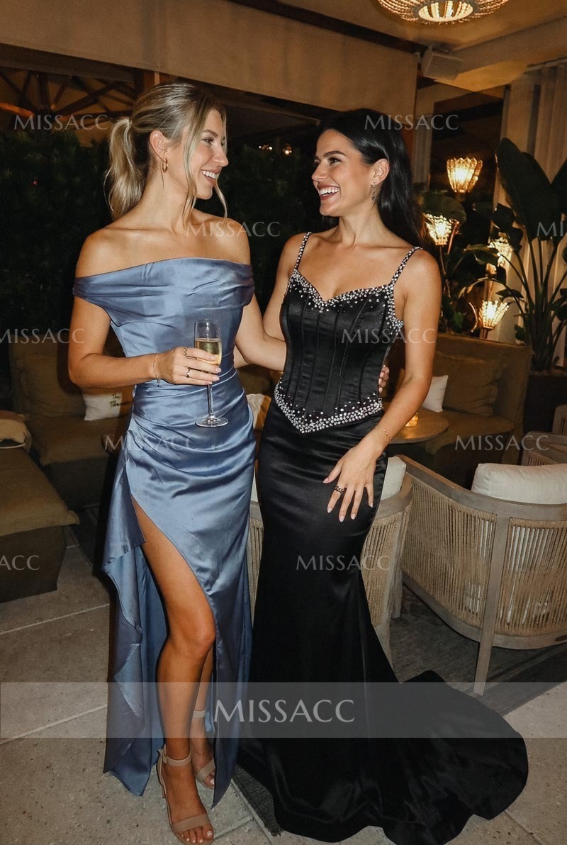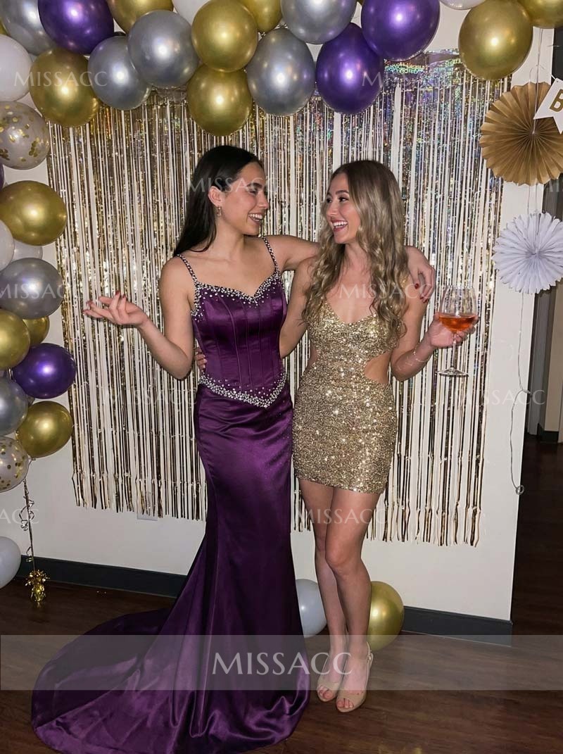 Dazzle everyone with the luminous appeal of this exceptionally styled prom dress. Parading a spectacle of with beading details on its contoured bodice, this beauty charms with a sweetheart neckline and a spaghetti strap. Sparkle amidst the upscale crowd in this prom dress.