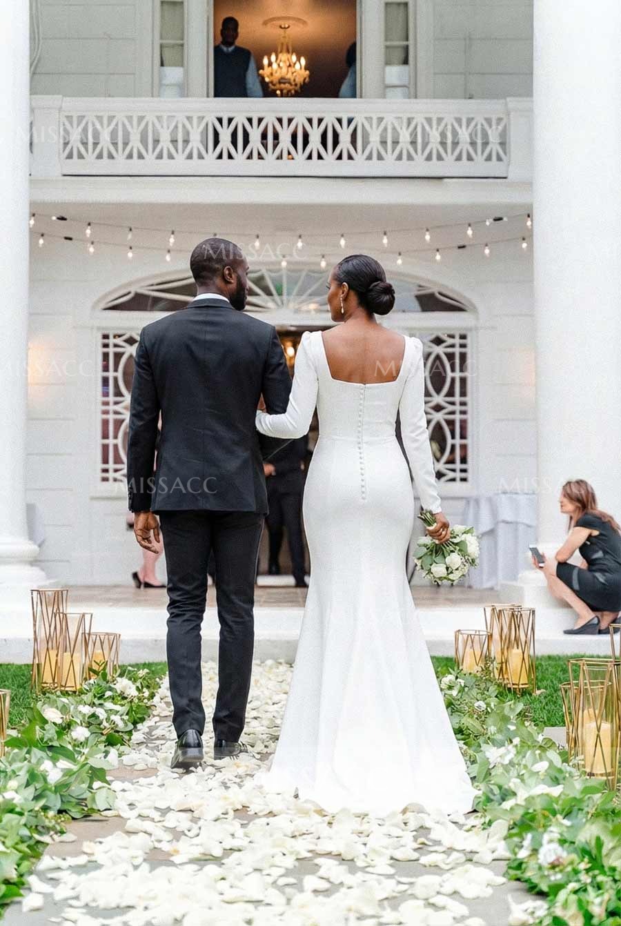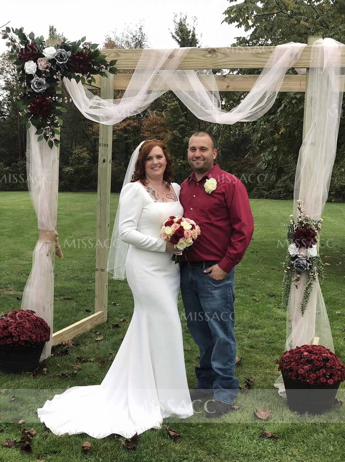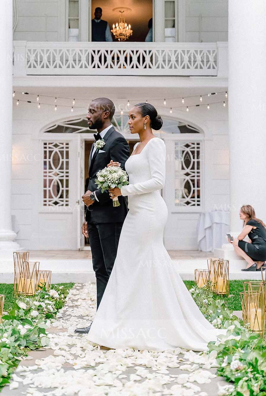 Filled with glamor, our Square Neck Long Sleeve Mermaid Minimalist Wedding Dress is designed for your special day. Crafted from premium materials, this gown exudes timeless elegance and is perfect for the modern bride seeking classic romance.