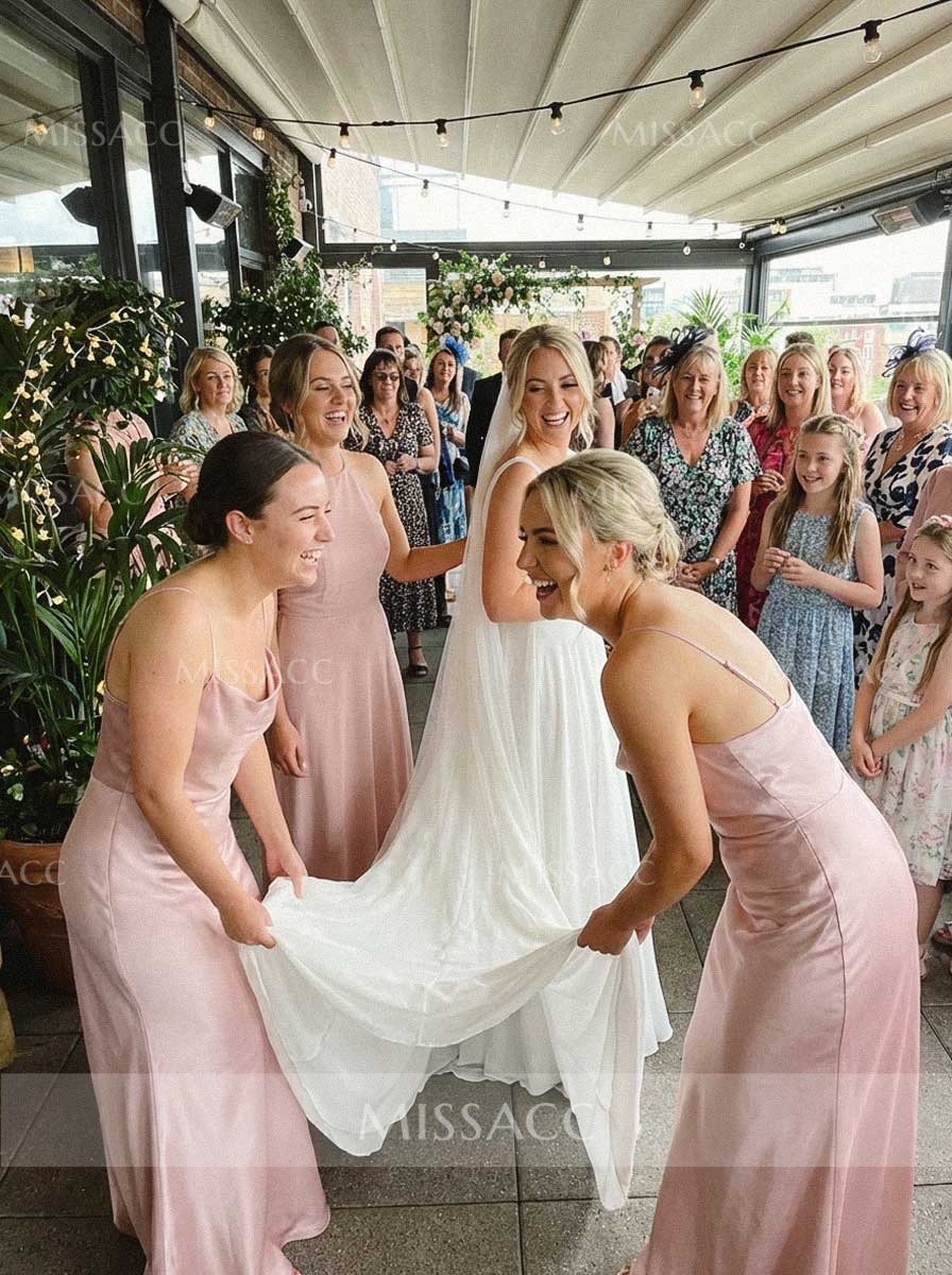 I was so nervous about buying a bridesmaid dress online, but this one worked out great. The material has a nice weight to it, so it doesn't feel cheap or flimsy. I wore it for an outdoor ceremony in July and didn't overheat, which was a huge plus. The back zipper was a little stiff at first, but some wax helped. Overall, I felt really pretty in it.