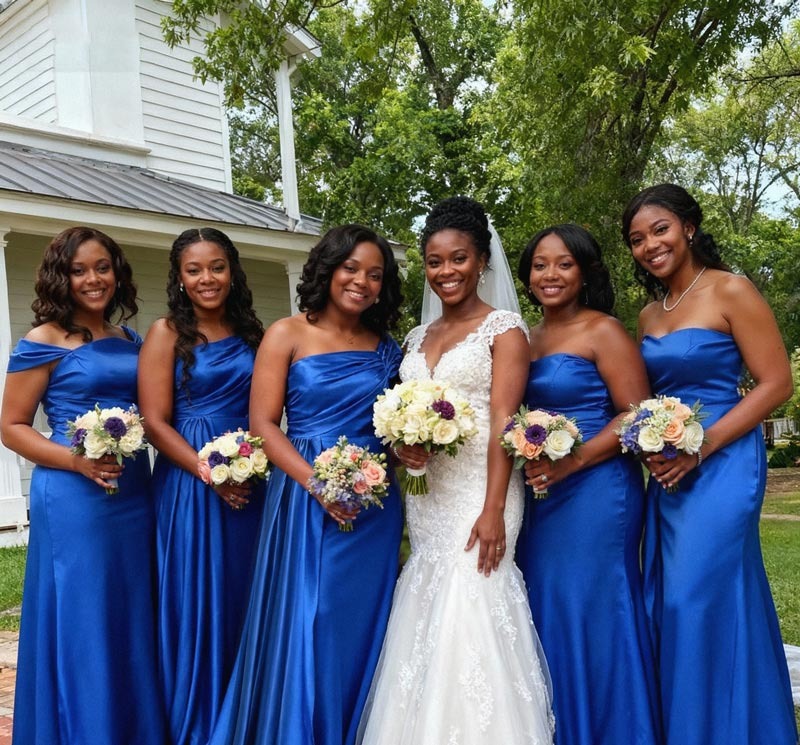 Trumpet/Mermaid Plunge Neck Sweep Train Stretch Satin Bridesmaid Dresses With Back Hole #SBD11548
