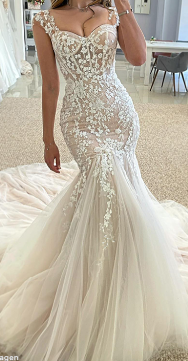 Discover our Trumpet Mermaid Lace Tulle Wedding Dress, a stunning sleeveless design with a sweetheart neckline, perfect for your special day. Luxurious material, elegant silhouette, available now.